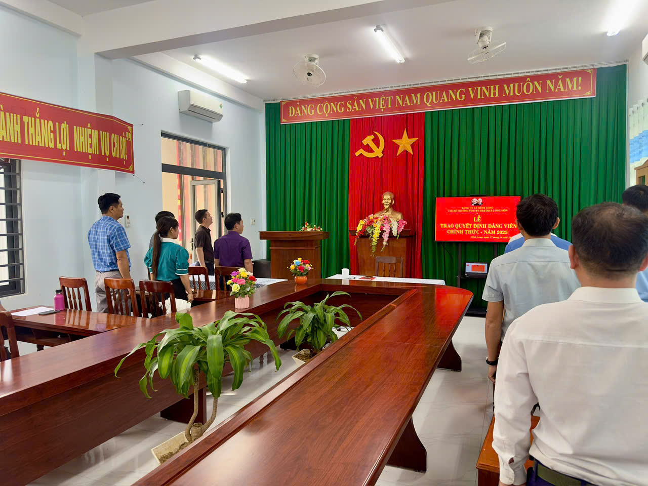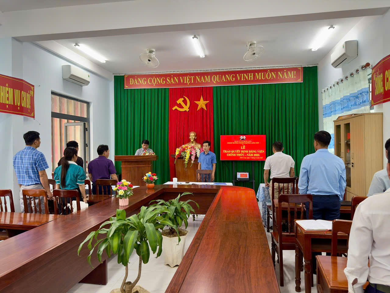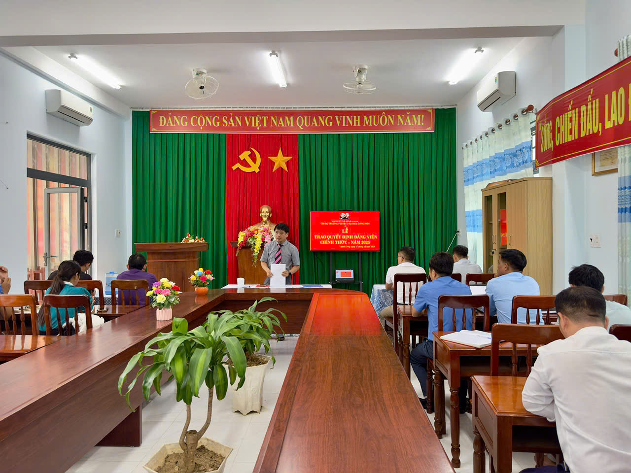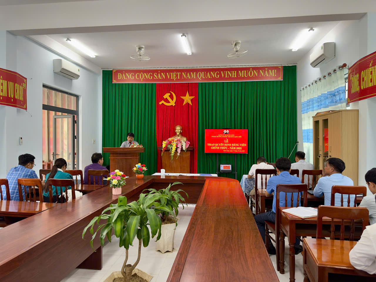 Buổi lễ diễn ra trong không khí trang nghiêm, đúng nghi thức của Đảng. Thay mặt Chi bộ, đồng chí Bí thư chi bộ đã trao Quyết định kết nạp chính thức và chúc mừng 02 đồng chí Lương Hữu Hoàng và Đàm Văn Thịnh chính thức đứng vào hàng ngũ của Đảng Cộng sản Việt Nam. Đây là niềm vinh dự, tự hào không chỉ của cá nhân đồng chí mà còn của toàn thể Chi bộ nhà trường.